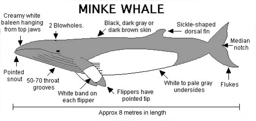 all the small whales became known as 'Minke's whales'. The smallest of the rorqual or large baleen