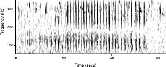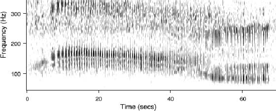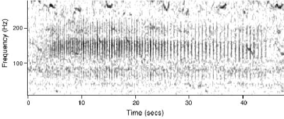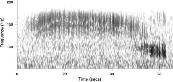 Two types of pulse sequences are most common: - In one type of "call", the pulse rate starts fast and ends slower (minke file 1) - In the second type, the pulse rate starts slow and ends faster (minke file 2) Pulse sequences occur over a wide frequency range, and there are many variations of the pulse rate: - minke file 3 depicts a pulse sequence in which the pulse rate is relatively constant. - minke file 4 depicts a pulse sequence in which pulse rate varies during the "call". Pulse sequences often occur in pairs with sequence pairs separated by several minutes. "Calls" (both paired or unpaired) with nearly identical features are usually repeated regularly every 6-12 minutes. |